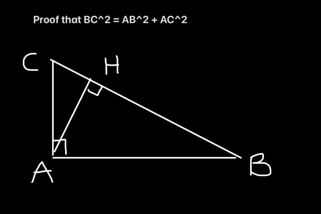 - And because, by looking at the diagram, HB + HC = BC, we come to the conclusion that: AC^2 + AB^2 = BC^2