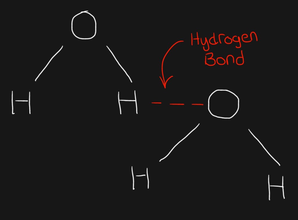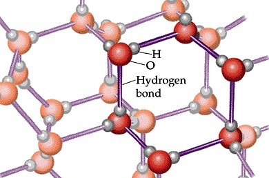 You might be wondering what this has to do with ice floating in water… it seems an awful lot of information for such a simple question. Well, you see, the hydrogen bonds are strongest when water is in solid form, and the arrangement they form looks like this: