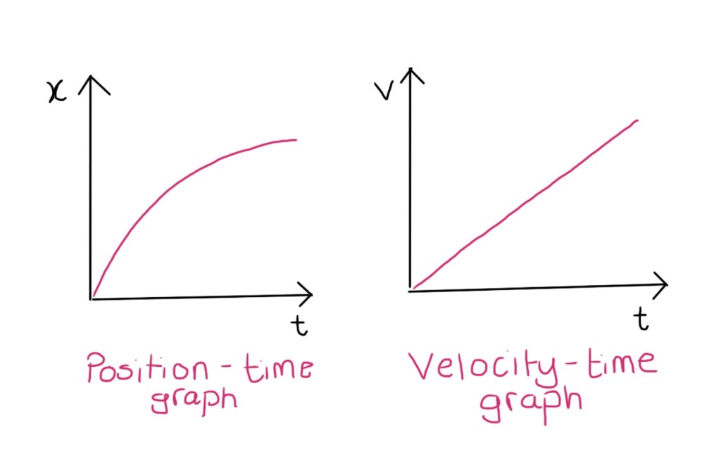 A straight diagonal line shows us that the object was covering a certain distance over a given time, and that it kept doing so at a constant rate. This is constant velocity: it stays the same and does not change.